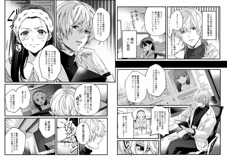 愛と欲望と執着心が凄かった専属栄養士失恋をきっかけに激太りしてしまい、専属栄養士と契約を交わした主人公・果乃子。見るからに怖くてクールな先生の指導のもと何とかいい感じの体型を維持することに成功。しかし、油断禁物と言わんばかりにスパルタな先生。ある日、抜き打ちチェックのため果乃子の自宅に訪問してきた先生。そこで先生の本当の気持ちが判明。眠る果乃子に愛を囁くようにセックスを強要し、己の欲望を注ぎ込む。この先生が長身のイケメンで愛が重くてかなり深い。果乃子ちゃんの程よく肉が付いたエッチな体を激しく愛撫し突きまくるシーンが最高。二人の想いと関係がどんどん濃密なものになってゆく人気TL漫画です。